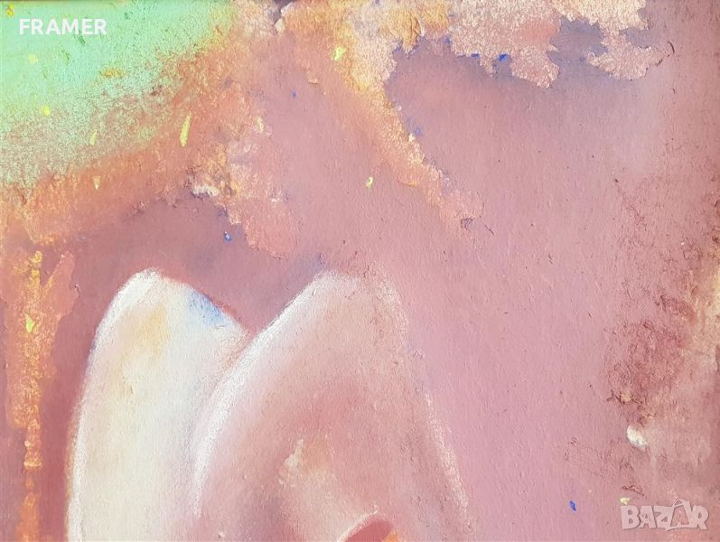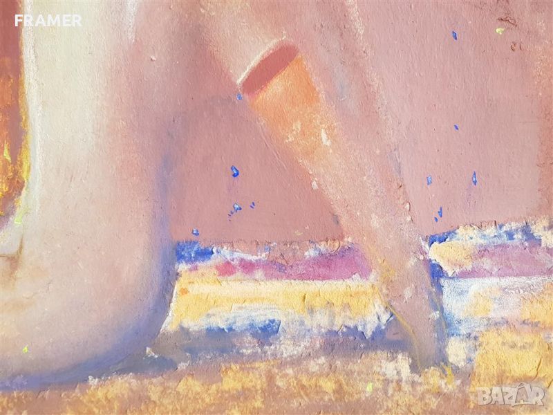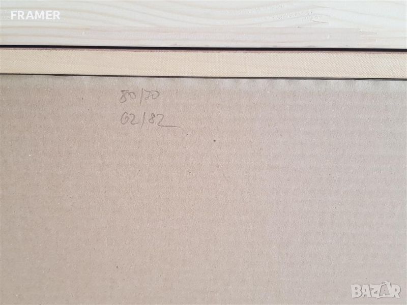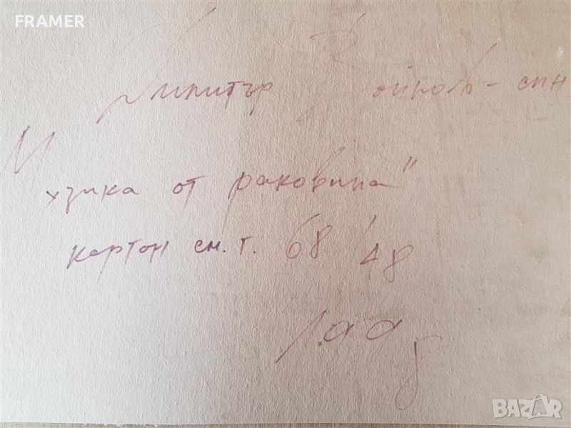 Творбата е оформена перфектно в стилна дървена рамка със стъкло. 62/82см.