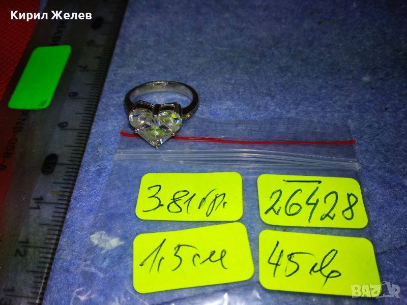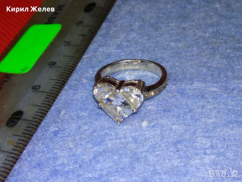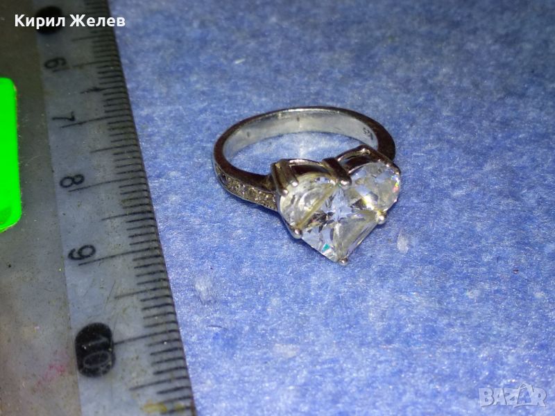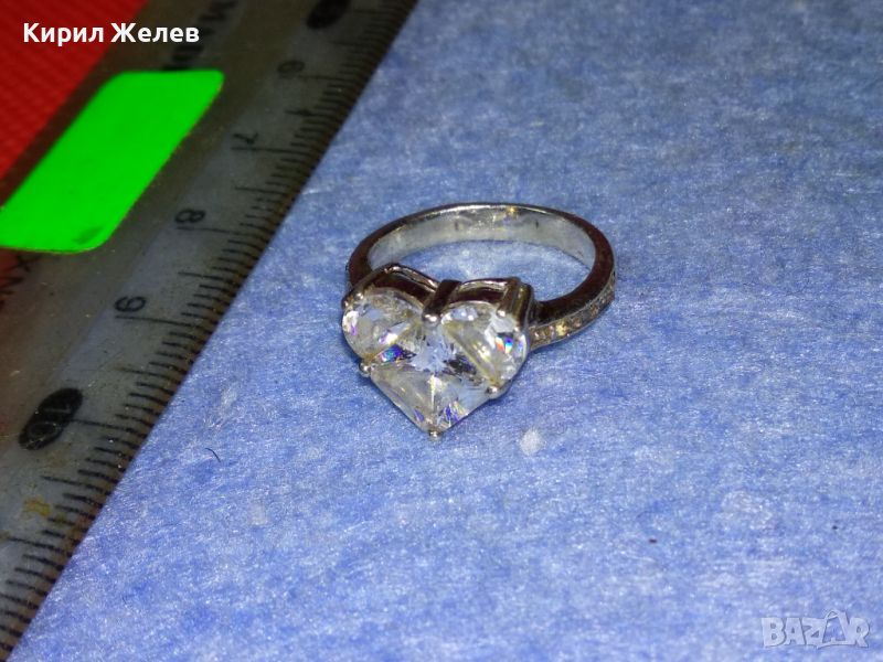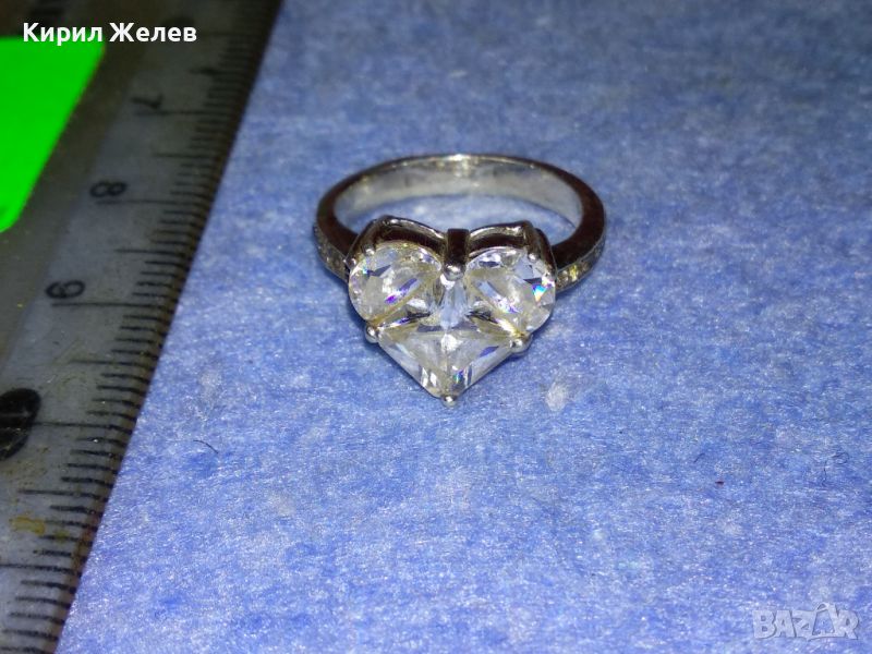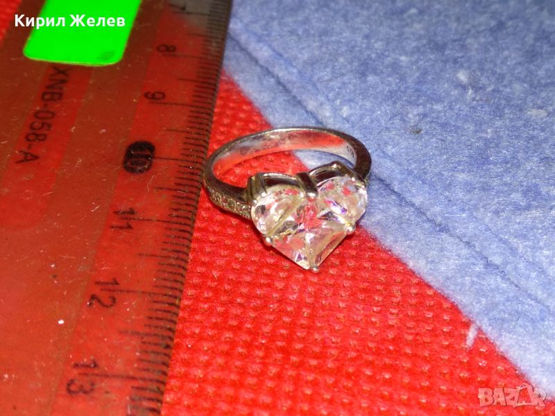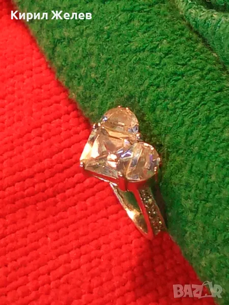 ВЕЛИКОЛЕПЕН СЪРЦЕВИДЕН СКЪПОЦЕНЕН СРЕБЪРЕН ПРЪСТЕН РОДИРАНО СРЕБРО 925 с ЛАБОРАТОРЕН МОЙСАНИТ 26428