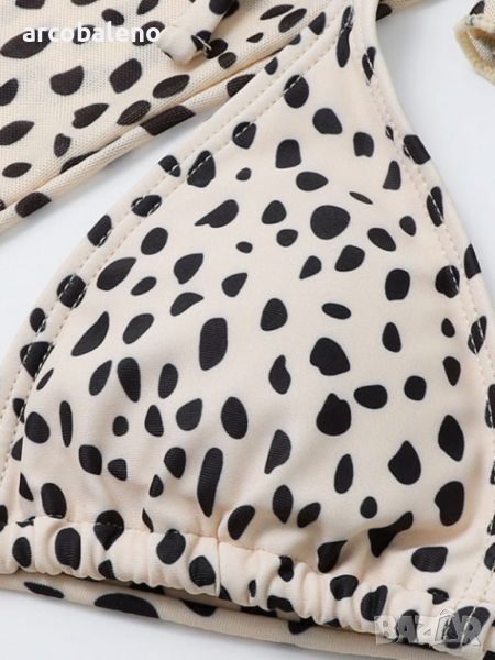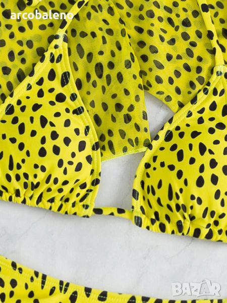 Дизайн: Изпъкнете с този бански костюм от три части с леопардов принт, включващ мрежесто яке с дълги ръкави, което добавя нотка на секси и елегантност към плажната ви визия.