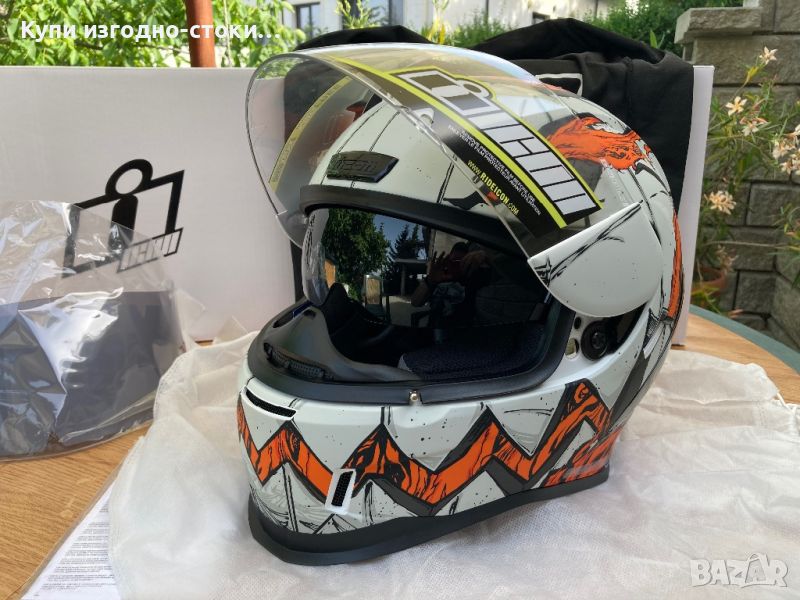 Отговаря на стандартите ECE 22.06 и DOT FMVSS-218 Шлемът се доставя с тъмна слюда дим и прозрачна.