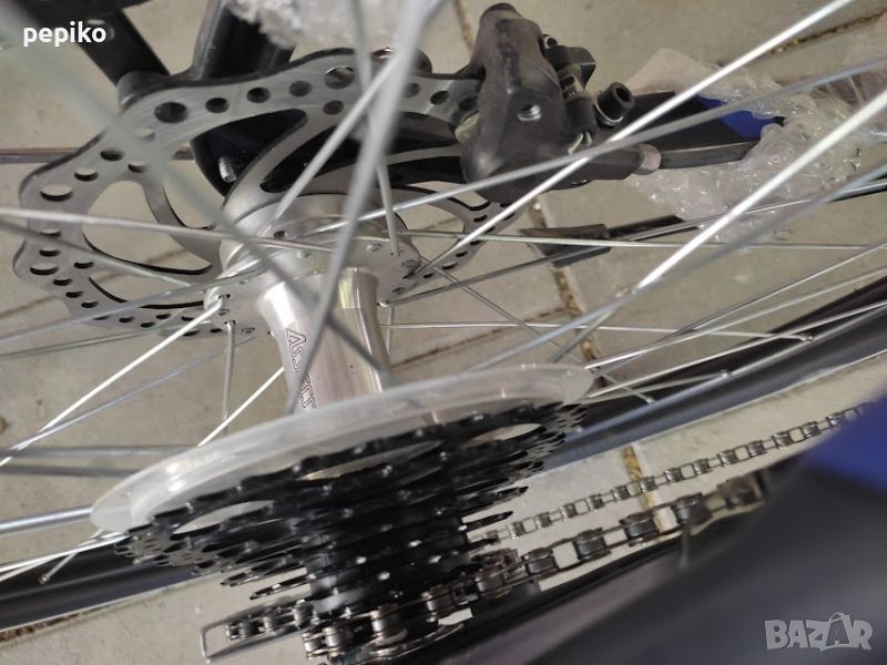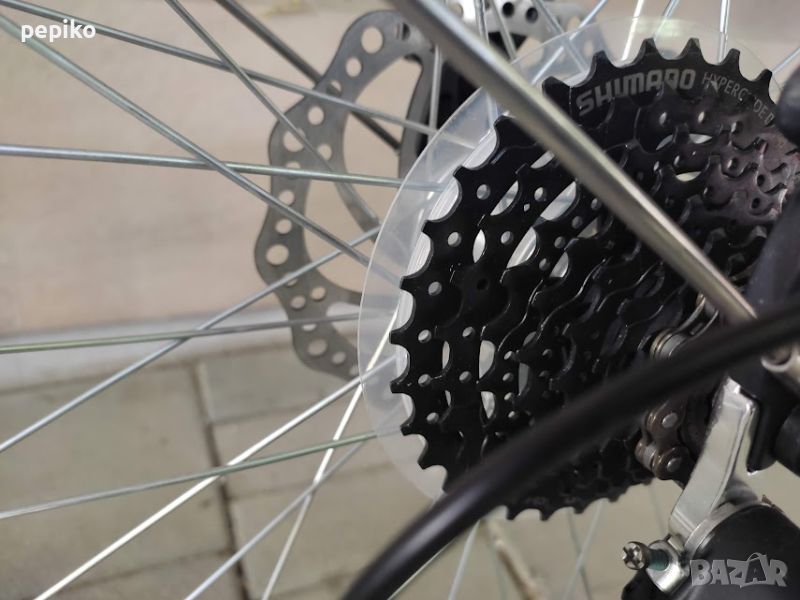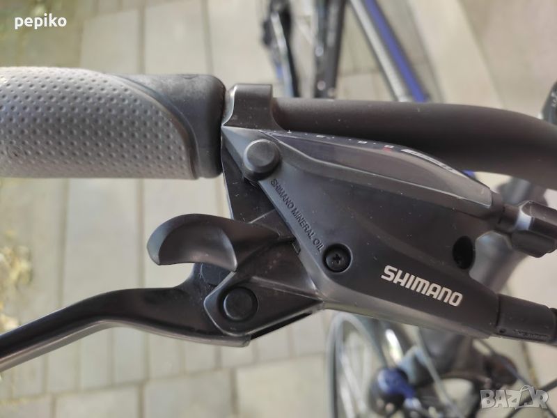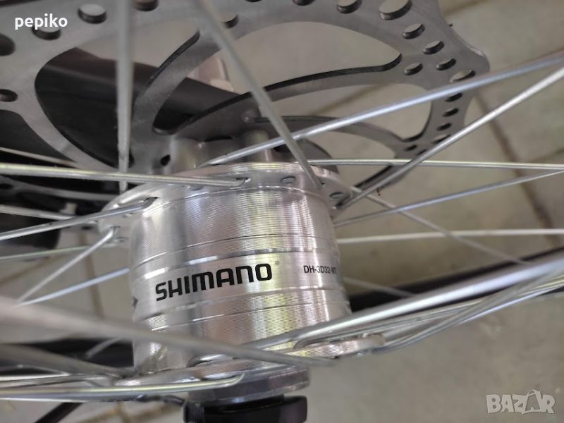 НОВ алуминиев градски велосипед SAVENO EXETER 28 цола,алуминиева рамка 28 цола с 24 скорости,фиксирани комбинирани превключватели SHIMANO OIL MINERAL 3 х 8,алуминиеви курбели SHIMANO,пластмасови педали,средно движение SHIMANO касета,преден отклонител SHIMANO ALTUS,заден отклонител SHIMANO ALIVIO,задни венци касета на шлици SHIMANO CS-HG-8,пластмасов цял предпазител на веригата,Италиански пластмасови калници,алуминиев багажник с ластици,алуминиево колче на седалката ZOOM 27.2мм.спортна седалка на релси SELLE MONTE GRAPPA,алуминиево раздвижно колче на кормилото на горе и на долу ZOOM,алуминиево кормило ZOOM,алуминиеви лостчета на спирачките SHIMANO,предна и задна ХИДРАВЛИЧНИ дискови спирачки,преден амортисьор SR SUNTOUR 100мм.ход регулиращ се,заключващ се,предна динамо главина SHIMANO DH-3D32-NT,алуминиеви двойностенни усилени капли,никелирани спици,гуми с безшумен грайфер и светлоотразителен кант КЕНДА 28 х 1,75,осветление от пред и от зад от динамо главина,размер на рамката 54 х 60 см.тегло 16,9кг.подходящ и за високи хора 190,195 см.много добър велосипед.