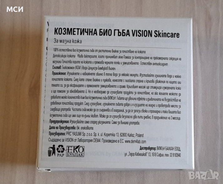 · Козметичната гъба VlSlON Skincare се произвежда ръчно от влакнини на Конджак и от други естествени екстракти.