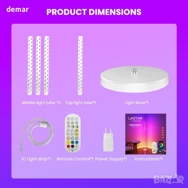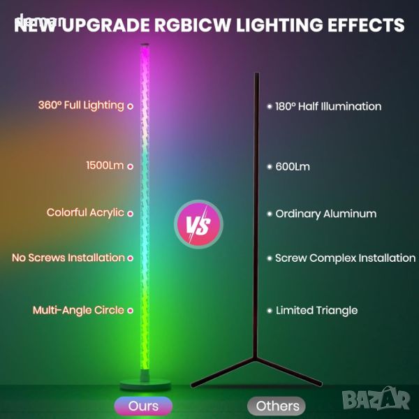 Дайте воля на своята креативност с подовата лампа LASTAR RGBIC LED, включваща многоцветни сегменти с възможност за персонализиране чрез приложението LASTAR Home, което също така предлага удобно управление на приложението и цветна функция „Направи си сам“. Насладете се на анимирани ефекти, като насочите неонова лента към стената. Синхронизирайте осветлението с музиката, за да подобрите филмите, партитата и игрите, като светлите цветове и яркостта се променят, за да съответстват на звука. Лампата предлага 16 милиона цвята и 48+ динамични предварително зададени сценични режима, включително уютно топло бяло. Идеална за различни домашни пространства като всекидневна, спалня и стая за игри, тази стилна, лека лампа създава комфортна атмосфера навсякъде.