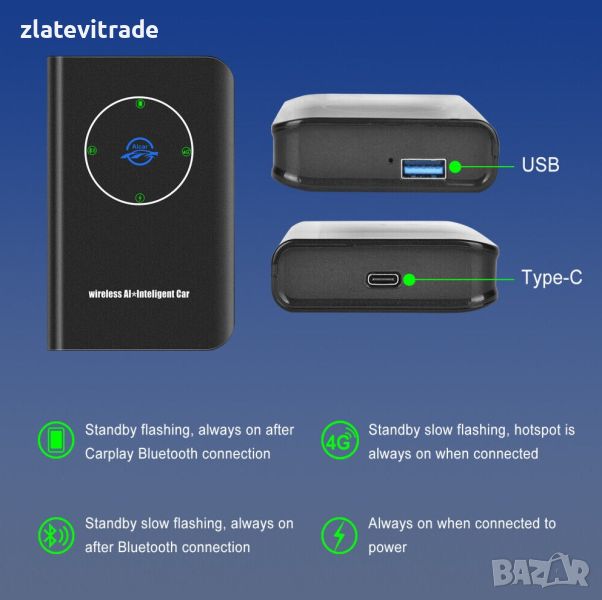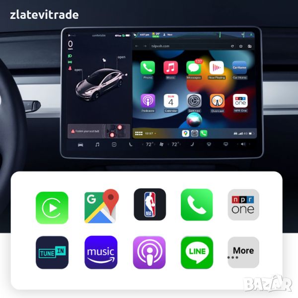 Забележка: адаптерът Tesla Wirelss CarPlay поддържа iPhone 8+ и по-нови версии.