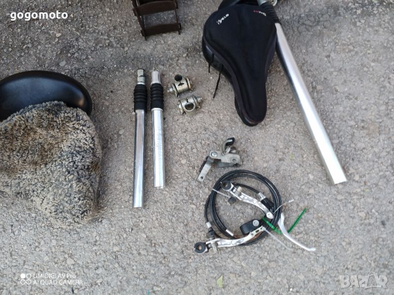 Седалка, колче с амортисьор, калъф за седалка, комплект спирачка с накладки, педали, капли, джанти.