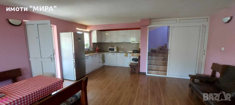 Предлагаме Ви къща с площ на парцела - 790 кв.м. Разгъната застроена площ на къщата - 235 кв.м., която се разпределя на три нива. Входа на къщата е с просторна веранда от където се влиза към хол/всекидневна с кухненски бокс с преход към две спални, като едната е с излаз към тераса, санитарен възел. С вътрешни стълби се стига до втория етаж където има една просторна спалня и едно студио /просторна стая с кухненски бокс с излаз към просторна тераса/, санитарен възел. Терена е с лека денивелация и осигурява възможност за партерен етаж от източната част на къщата, предвидено за гараж но в последствие е преустроено в студио със санитарен възел. Състоянието на имота е много добро. Отоплението е локално с камина. Къщата се нуждае от козметичен ремонт и е готова за нанасяне. Дворното пространство е добре оформено, декорирано с различни цветя, посети са множество плодни дръвчета. Чудесна инвестиция за живеене и за малък туристически бизнес. Продава се с наличното обзавеждане и оборудване.