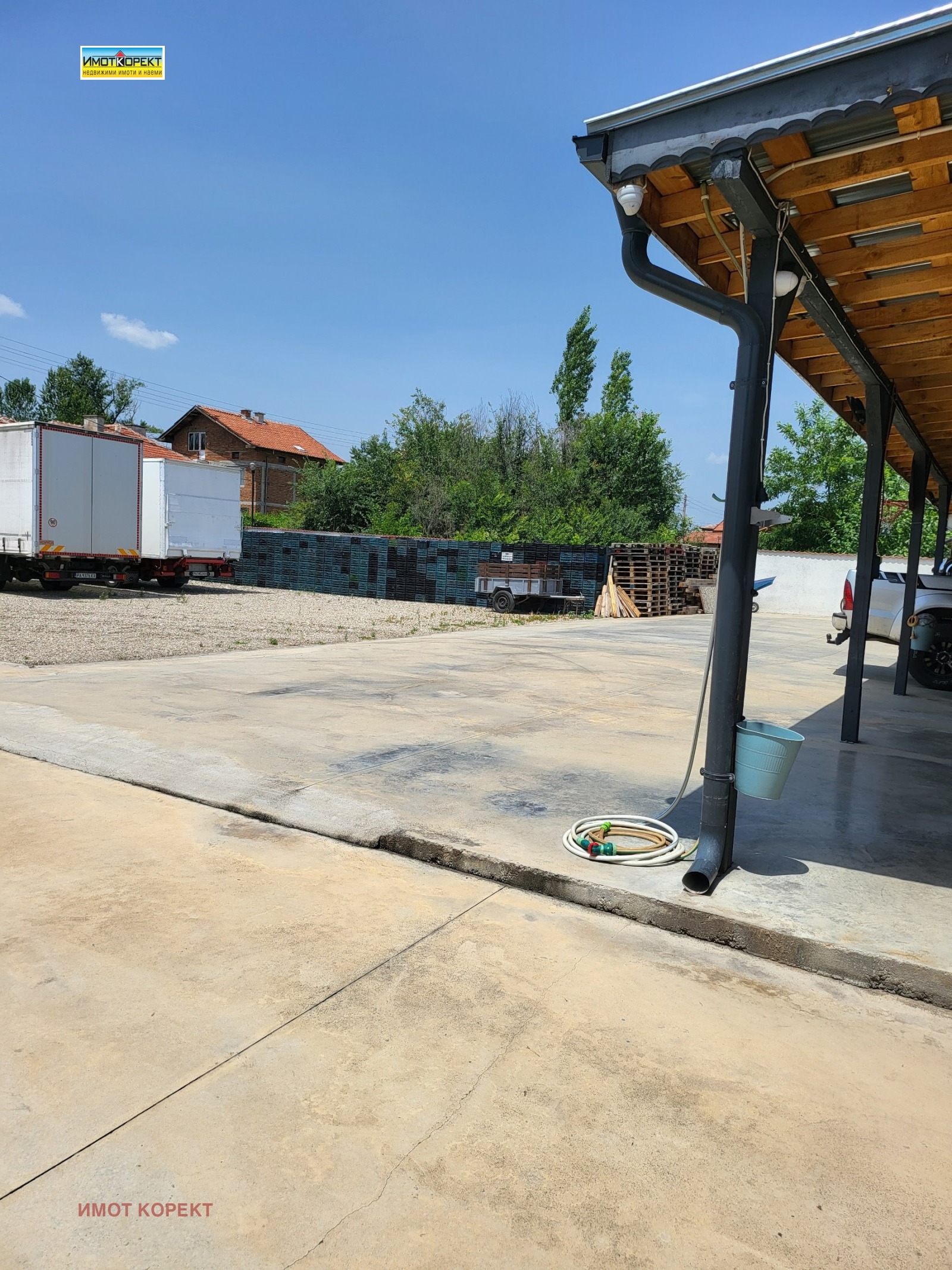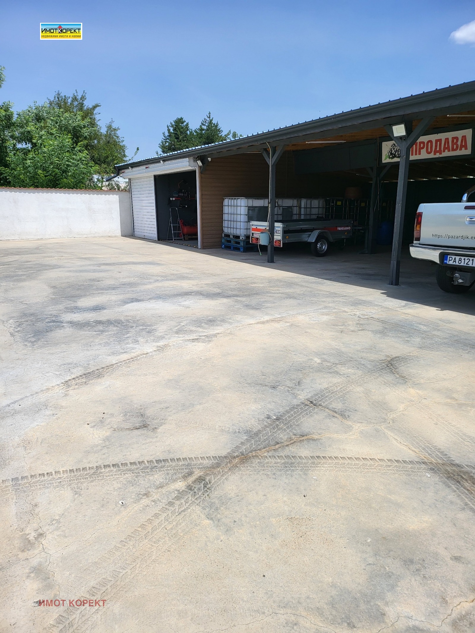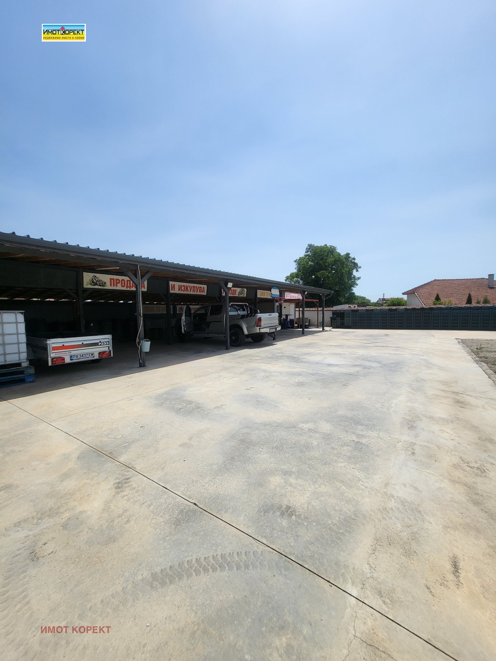 АГЕНЦИЯ 'ИМОТ КОРЕКТ' ПРОДАВА ИМОТ НА ГЛАВЕН ПЪТ В С.ВИНОГРАДЕЦ, САМО НА 90 КМ ОТ СОФИЯ И 20 КМ ОТ ПАЗАРДЖИК. ИМОТА ПРЕДСТАВЛЯВА БАЗА-ПУНКТ ЗА ИЗКУПУВАНЕ НА ПЛОДОВЕ /ЧЕРЕШИ, ГРОЗДЕ И ДР./, В ПАРЦЕЛ ОТ 1300 КВ.М СА ИЗГРАДЕНИ НАВЕС 150 КВ.М, ДВА ГАРАЖА ВСЕКИ ПО 20 КВ.М И ОФИС 12 КВ.М. ПРОДАВА СЕ И С НАЛИЧНОТО ОБОРУДВАНЕ, ВКЛЮЧЕНО В ЦЕНАТА- ДВА КАМИОНА, 10000 БРОЯ НОВИ КАСИ. ИМОТА Е ЗАХРАНЕН С МОНОФАЗЕН И ТРИФАЗЕН ТОК, УДОБНИЯ ДОСТЪП ПОЗВОЛЯВА ЛЕСНО МАНЕВРИРАНЕ И НА ТИР. НОВИТЕ СОБСТВЕНИЦИ МОГАТ ДА ИЗПОЛЗВАТ ПАРЦЕЛА С РАЗЛИЧНО ОТ ГОРЕОПИСАНОТО ПРЕДНАЗНАЧЕНИЕ.