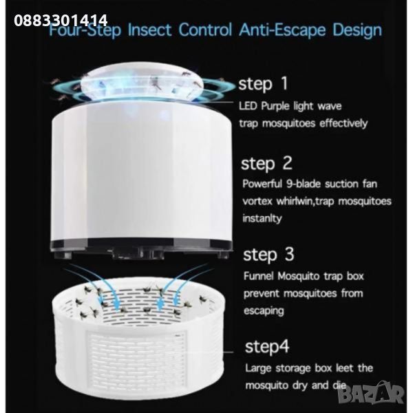 Силно засмукване - когато комарът е близо до лампата, той ще бъде засмукан в дъното от силен вихър,