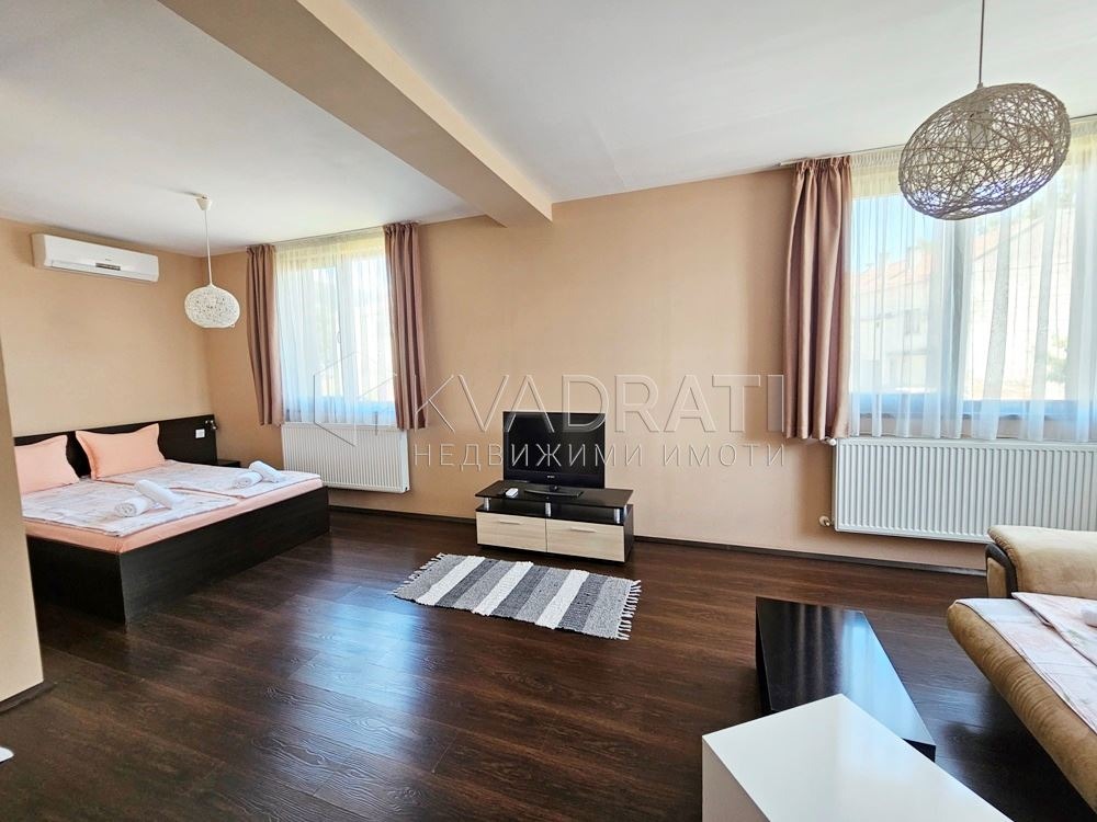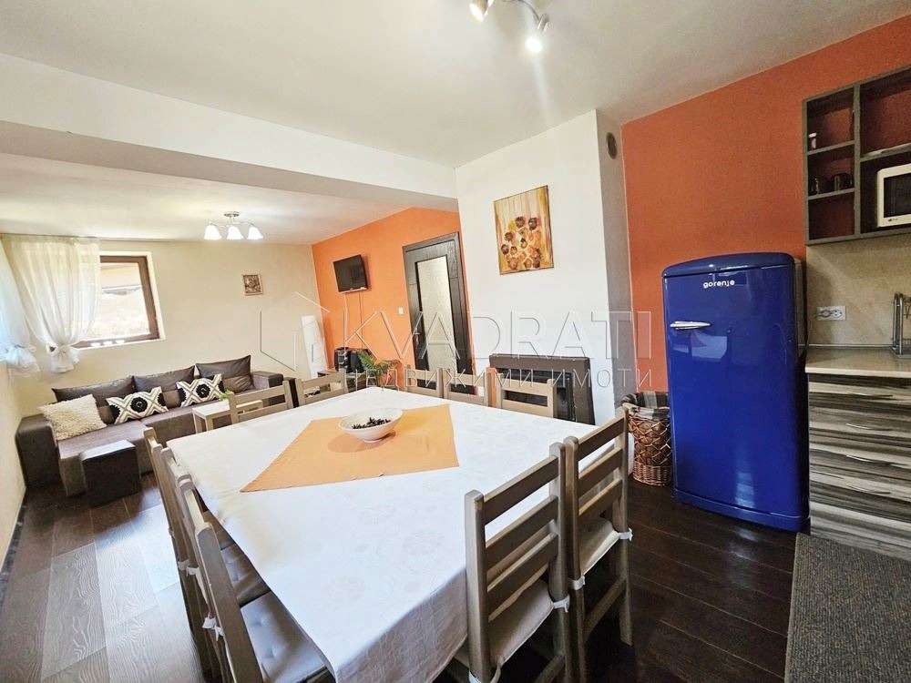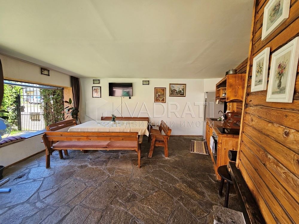 пелети, охлаждането е решено с климатици. За разкош е и камината във всекидневната. Дворът е не голям, ограден с масивна и зелена ограда, оформен на кътове, с детска площадка, малък басейн през летните месеци, барбекю зона. Отделно има изградена и голяма постройка в битов стил 42 кв.м с втора кухня и открито огнище на дърва. Поради местоположението си в центъра на страната и в подножието на Стара планина, гр. Сопот е разпознаваемо място за целогодишен туризъм. Градът е с мек климат през зимата, прохладни лета, а най-дългия открит седалков лифт в България и възможностите за парапланеризъм, го провят притегателно място за туристи от страната и чужбита. Къщата е удобна, функционална, лесна за обслужване и освен за инвестиция, е отлично място както за постоянно живеене, така и за ваканционен имот. За контакти и повече информация: Тоня Минчева 0886758787