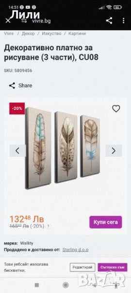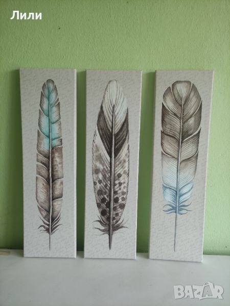 Сет от три картини с размери 20 ширина на 70 см височина, отлични за декорация на стена. Изпращам по Еконт или Спиди.