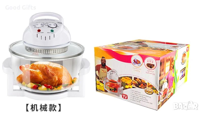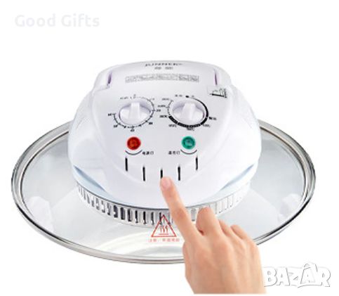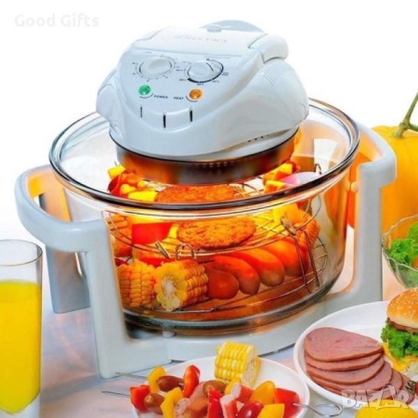 Намалява времето за приготвяне до 3 пъти! Готви без мазнини и без да цапате куп съдове! Тайната е в уникалната комбинация от халоген, конвекция на топлия въздух и инфрачервена технология! Термичната обработка е бърза, равномерна и в дълбочина!