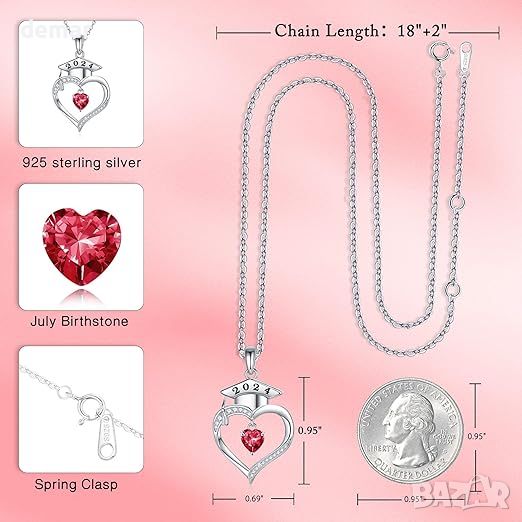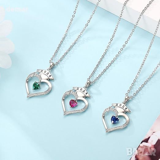 TINGN 2024 Сребърно дамско колие със сърце с рожден камък, подарък за дипломиране за жени
