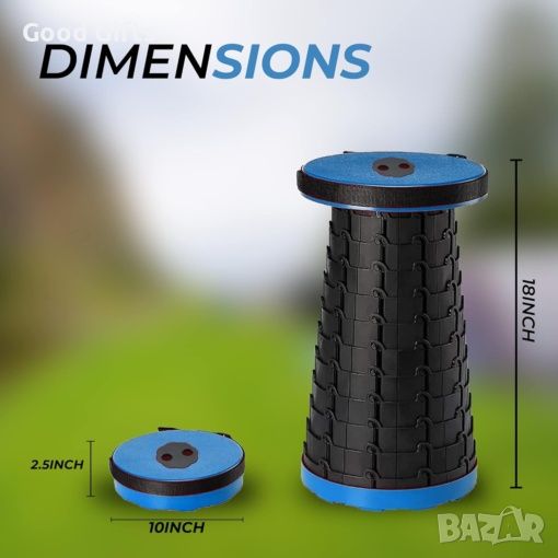 Сгъваемият къмпинг табуретка тежи само 1,2 кг. Изработен е от високоякостен материал за опазване на околната среда, изработен от найлонов пластмасов материал PA66, така че столът е лек и преносим. Цилиндричната конструкция, плътната свързваща катарама и противоплъзгащата се основа осигуряват стабилността на сгъваемата къмпинг седалка, като по този начин осигуряват безопасна и удобна среда за сядане.