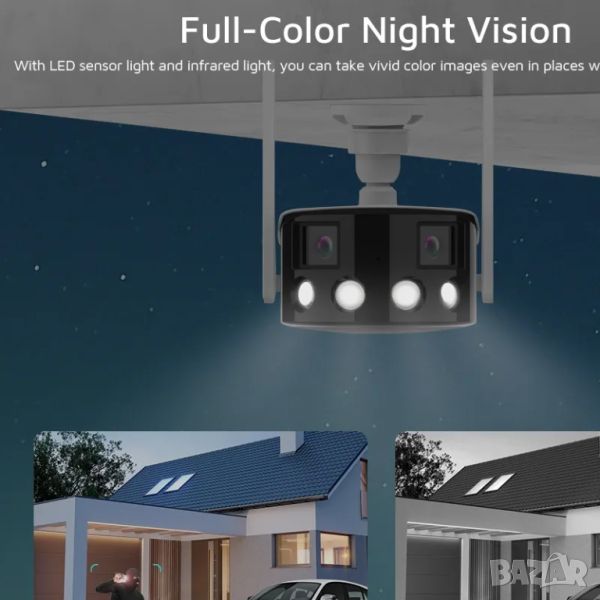 Функция за засичане на хора, при приближаване на субект през нощта включва вграден LED прожектор с мощни диоди в бял цвят, осветява с реална светлина и предава цветен образ.