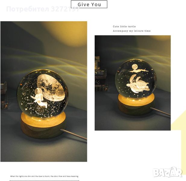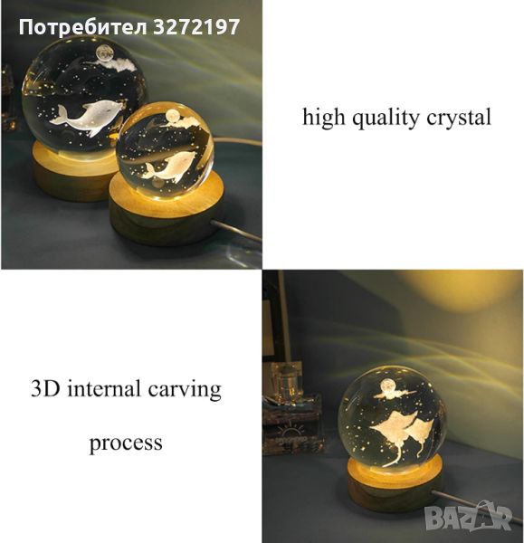 - Светеща нощна лампа с кристална топка