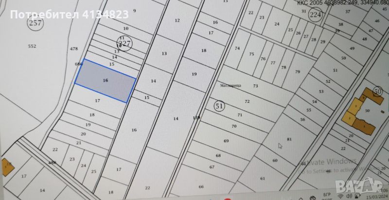около 300 метра от пътя Баня – Банско. Площ - 3000 кв.м. с право за