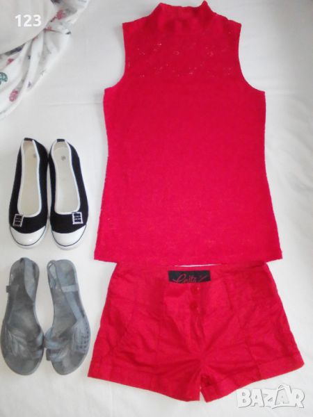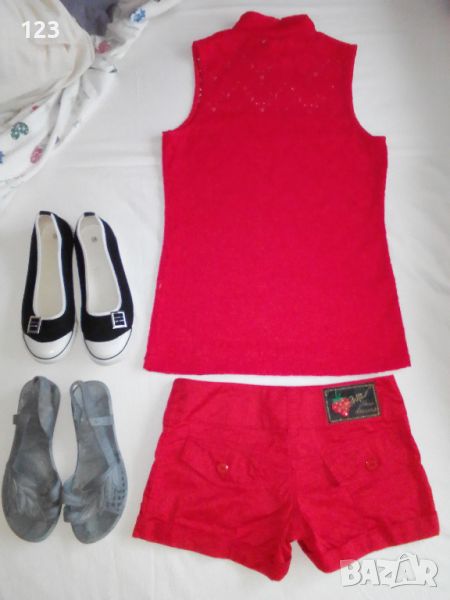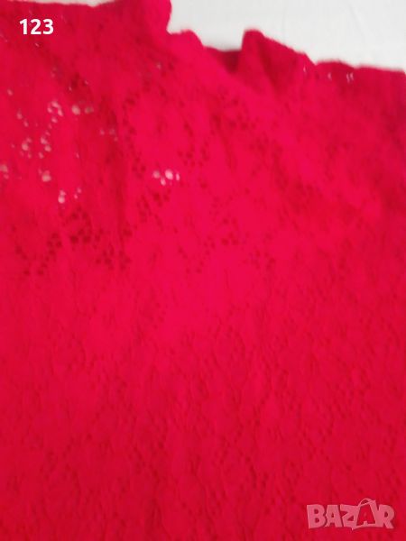 2) Червен дантелен потник. Като ново. S-M размер. ( Отпред има червена подплата под дантелата, за да не прозира и да подчертае силуета, понеже е с извивки хубави над бюста, а отзад е без подплата и така се откроява дантелата за по-интересно.)
