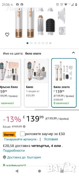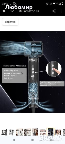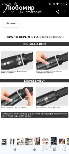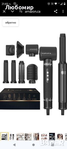 Налични 4 броя .Четка за сешоар 7 в 1, йонен сешоар с 3 температури и 3 скорости 110 000 RPM с дифузер, лява и дясна обвивка за оформяне на въздушно къдрене, четка за сешоар, обем, преса за коса, къдрене, термична четка, пътуване.Новият сешоар с диамант е оборудван с високоскоростен безчетков двигател със 110 000 RPM, нашият комплект четки с горещ въздух съдържа 1 x сешоар, 1 x сешоар с дифузер, 2 x обвивка с въздушна маша, 1 х четка за изправяне, 1 х нагрята кръгла четка за оформяне, четка за издухване с въздушен стилер, която прави бързо изсушаване, изправяне, къдрене, обем и масажиране на скалпа. Ефективен и ви позволява да създадете красива прическа.Първо хванете леко косата си, оставяйки разстояние от 10 см от върховете на косата. 𝟐. Дръжте въздушната маша вертикално на върха на косата и косата автоматично ще се увие с въздушния поток. По това време движете машата успоредно към корена на косата, няма нужда да въртите дръжката (за разлика от традиционната маша), задръжте горещия въздух за 10 секунди, след това превключете на студен въздух за 5 до 10 секунди. 𝟑. Затворете сешоара, разхлабете къдриците на косата, вземете естествени къдрици на косата.Продължително натискане на "Бутон за захранване" 3s стартиране на сушилнята. Сешоарът има 200 милиона отрицателни йони за прическа без къдрене. Нашата четка за сешоар, проектирана с найлонов щифт и тъфтинг влакна, които предотвратяват заплитането на косата, правят косата пухкава и естествена, за лесно придаване на обем, функция за самопочистване, включване в захранването, дълъг бутон "WIND" 5s, входът за въздух ще духа обратната посока и спрете след почистване за 8 секунди, поддържайте сешоар дълъг живот, перфектни подаръци.Ниска температура 55° ВИСОКА СКОРОСТ НА ВЯТЪРА, за суха коса/фина коса, Подходящо за лятна употреба. СРЕДНА: Средна температура 75℃, СЛАБ ВЯТЪР SPEED, за полусуха коса / нормална коса, Подходящ за стилизиране. ВИСОКА: Висока температура 130℃, ВИСОКА СКОРОСТ НА ВЯТЪРА за мокра коса / гъста и къдрава коса, Подходящо за зимна употреба, изсушава косата бързо. С четка за сешоар 7 в 1 посрещнете всичките си нужди от стил, бъдете най-блестящата кралица.