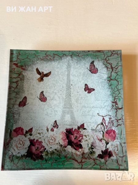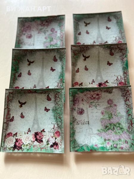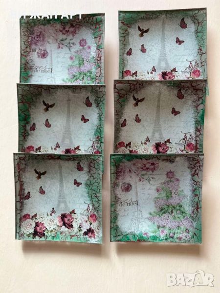 Ръчно декорирани чинии за десерт "Париж" 6 броя, размери 15/15см.