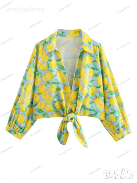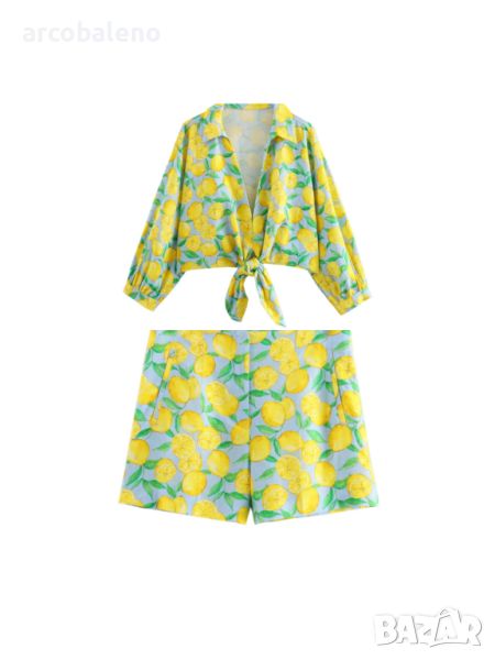 Дамски комплект от две части с къси панталони с лимонов принт