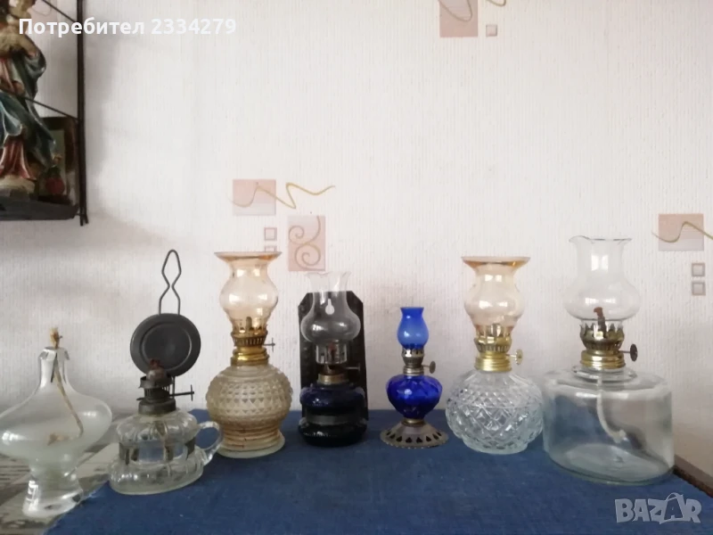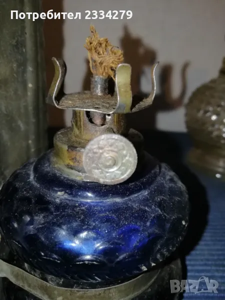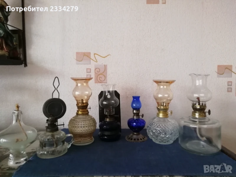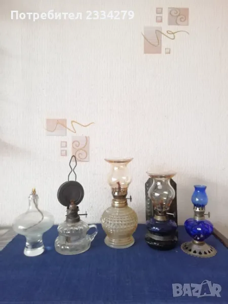 газени лампи изработена от кобалтово стъкло. Красива декорация, колекция. N:1 газена лампа, спиртна, цена 5лв.; N:2 Стара гръцка газена мини лампа със стъклена дръжка, размери на тялото 10х8см.,има щемпъл на въртока, цена 17лв.; N:4 стара газена мини лампа от кобалтово синьо стъкло и стойка за закачане, размери: 10х7см., цена 20лв.; N:3 Стара малка газена лампа с орнаментирано стъклено тяло, шише стъкло размери: 13х8см.,цена 18лв.; N:5 комплектна мини газена лампа от орнаментирано кобалтово синьо стъкло цял размер: 14х7см., цена 17лв.; N:6 мини газена лампа със шише, неупотребявана, цена 17лв.; N:7 средна газена лампа със стъклено шише, неупотребявана, цена 20лв.