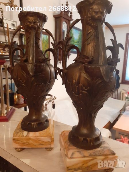 два броя красиви стари френски вази метал размер 37x14см цена 145.98 лв броя.