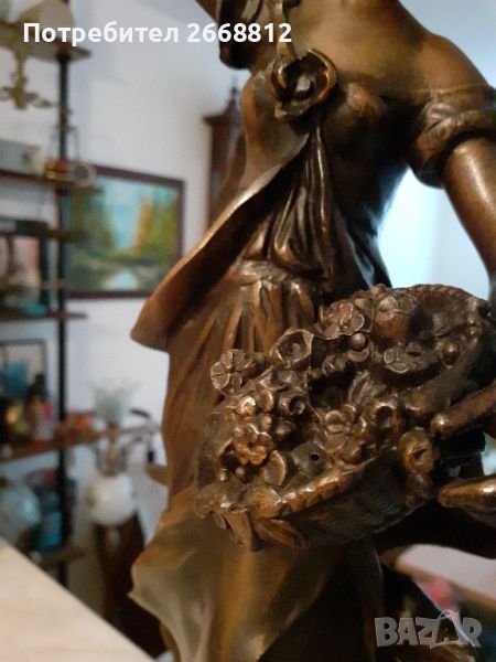 стара красива запазена френска статуетка метал височина 50 см основа 14 см цена 597.90 лв.