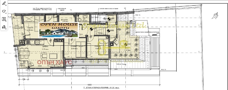 Състои се от: коридор,дневен тракт,три спални,баня,тоалет,дрешник и три тераси.