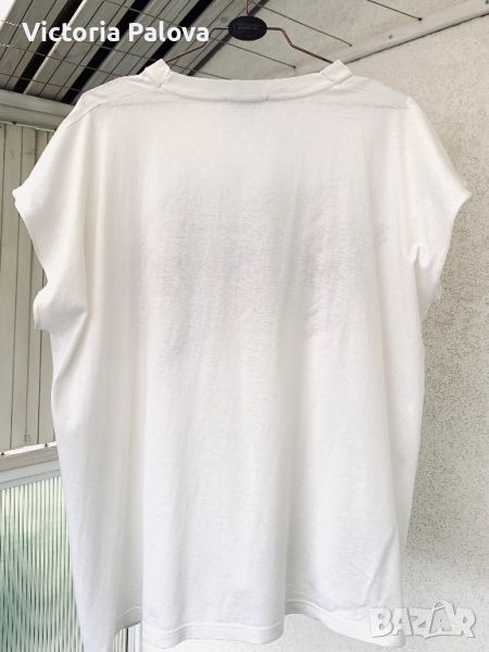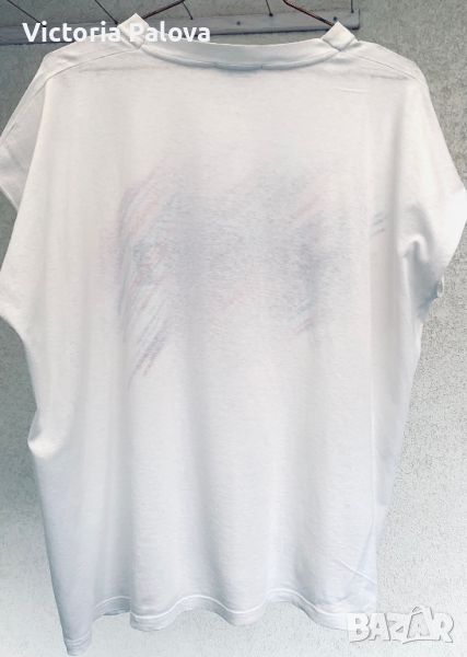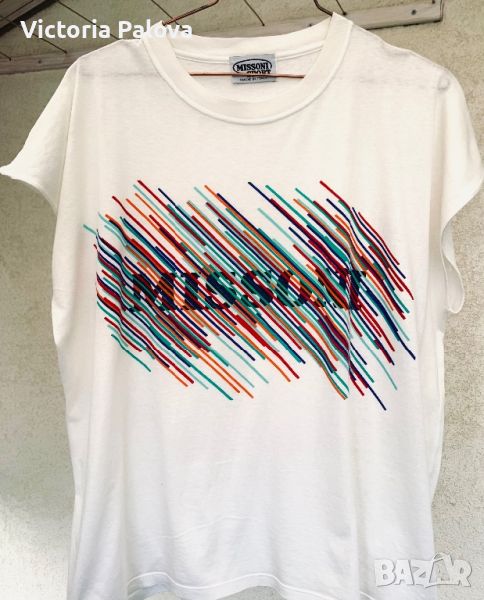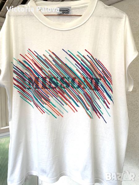 Уникалният стил на италиански бранд Missoni лесно се разпознава по целия свят. Зигзагообразната рисунка и гладките шевове - визитната им картичка . Дизайнерите на Missoni успяват да превърнат безформения трикотаж във въздушна и съблазнителна материя. Тениската е такава - нежна, въздушна и много красива. Цвят ivory, паднало рамо - 70см, ГО - 64см, дължина - 68см.