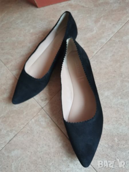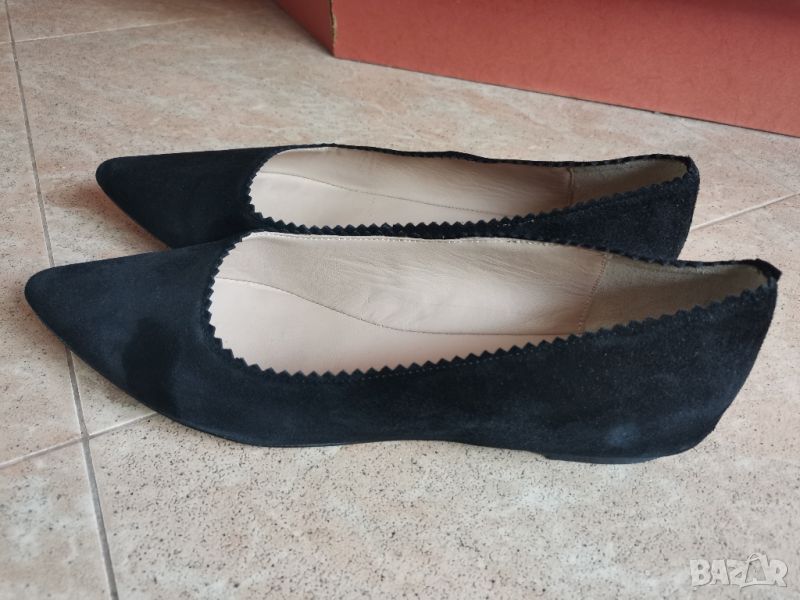 Черни елегантни ежедневни обувки. Равни и много удобни. Обути са един единствен път, затова съм написала използвани,но както се вижда отдолу етикета си стои. Изпращам с Еконт или Спиди с опция преглед и тест.
