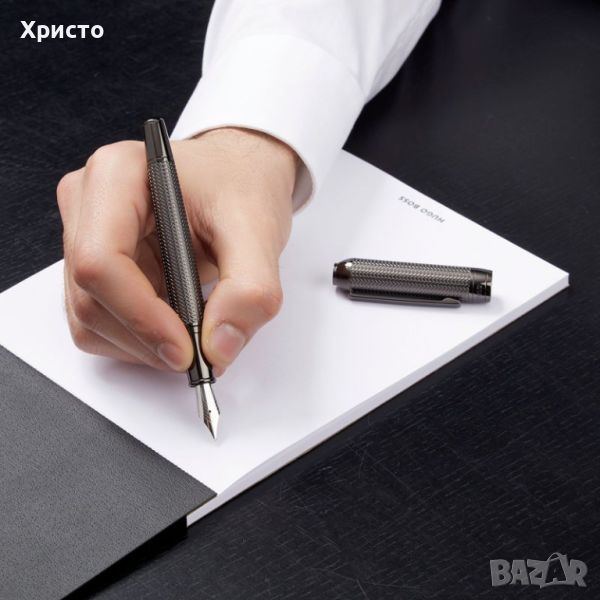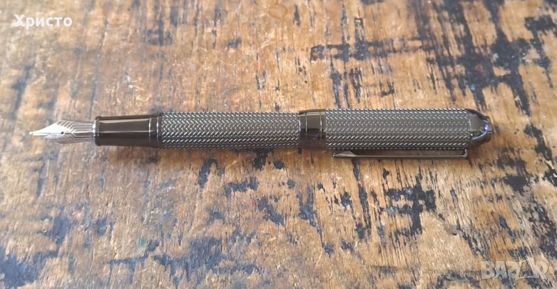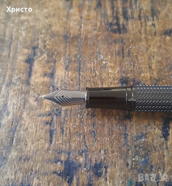 включваща модернизирани шарки на рибена кост, изпълнени върху матово гравирани метални повърхности. Перо стоманено гравирано. Пише със стандартни патрончета, като в писалката има едно. В оригиналната си кутия и сертификат. Размер на кутията 20x6,5x3,5 см. Чисто нова, не е използвана нито един път. Уникален, и красив модел. Страхотен подарък. За ценители. Внос от Германия. Идеално балансираното ѝ тяло, спомага за максимално удобство при писане. Имам 2 броя останали.