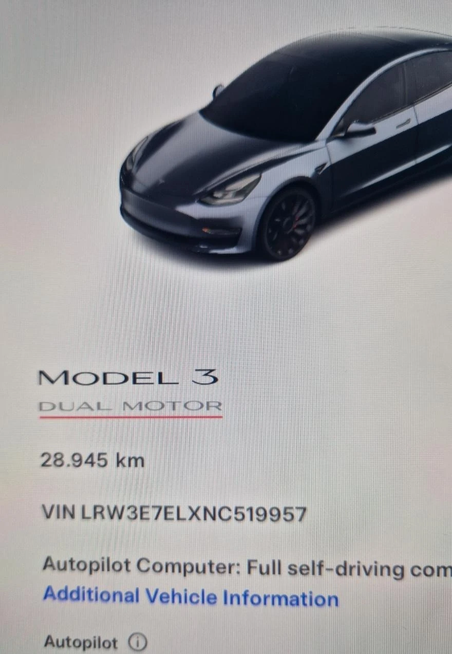 Автокъща " Стил Ауто София" Ви представя един прекрасен автомобил. Марка : Тесла Модел : 3 Модификация - 4х4 - Лонг Рейндж Всички екстри за модела, гаранция от Тесла! Автомобилът е внос от Нидерландия, Прекрасно състояние - нови гуми , без данъци , безплатна синя и зелена зона . Възможност да се тества в сервиз по избор. Без нотариални такси прехвърляне само с фактура и договор. Наличен в София.