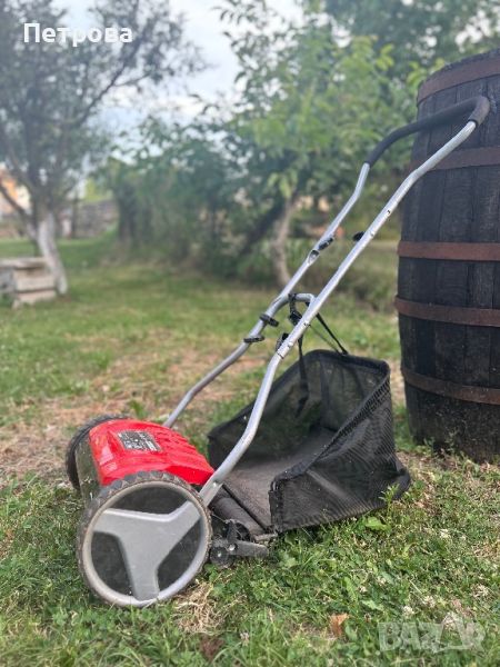 Ръчната косачка е изработена от здрава и надеждна пластмаса, като е снабдена със стабилен барабан с диаметър от 45 mm. Широките колела пък правят косачката лесно подвижна, а 16-литровият кош предлага достатъчно пространство за събиране на окосената трева.
