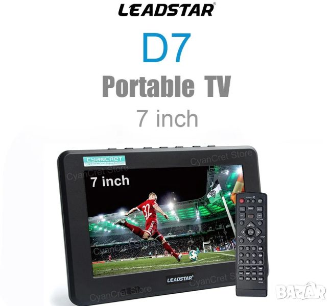 Портативен, висококач9ствен телевизор 7 инча с цифров тунер и вградена акумулаторна батерия, перфектна кристална картина на супер промоционална цена.