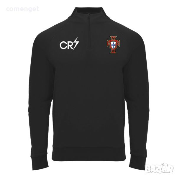 Мъжка спортна блуза PORTUGAL RONALDO / ПОРТУГАЛИЯ РОНАЛДО от гладък полиестер стояща по тялото. Блузата е с половин цип, реглан ръкави с ластик и ластик на талията. Ципа е с протектор на брадата, а горната част на блузата с дизайнерска кройка. Идеална за спортуване и тренировки.