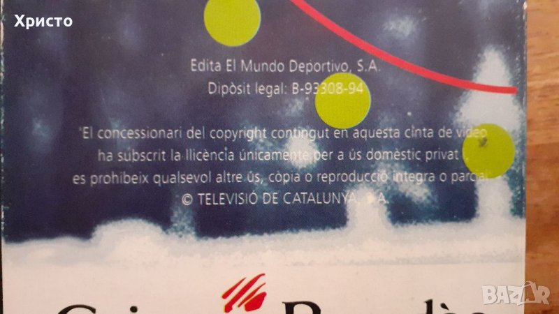 Продавам видео касета VHS с головете на Стоичков в Барса 1993-1994 година. На касетата пише на испански: " Най-добрите голове на брилянтния футболист на Барса 93-94". Спонсор на издаването на касетата е испанският вестник El Mundo Deportivo. Касетата е пускана 2 пъти само, чисто нова. Пробвана е на 23.06.2023 с видео плеър за VHS касети и работи без проблеми. Рядък и уникален артикул за колекционери и фенове.