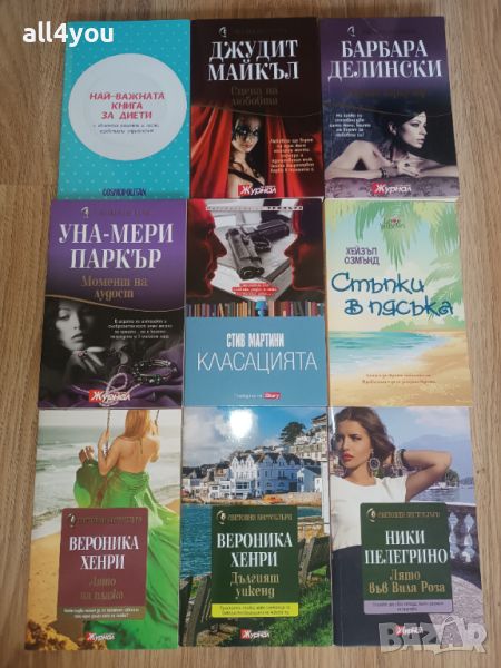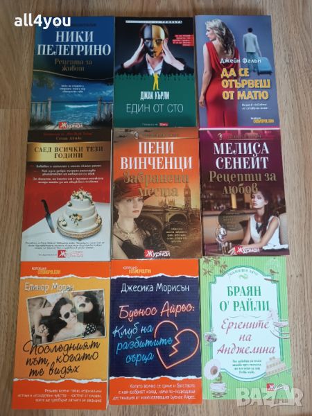 Книги за вашето свободно време- бестселъри, съвременни романи. Цена за брой. Някои от тях не са четени, други на един прочит с вид на нови.