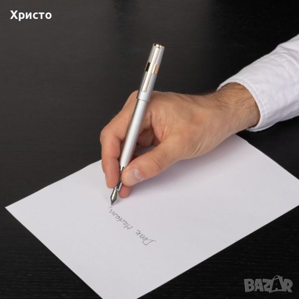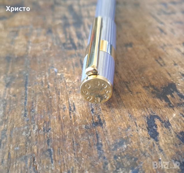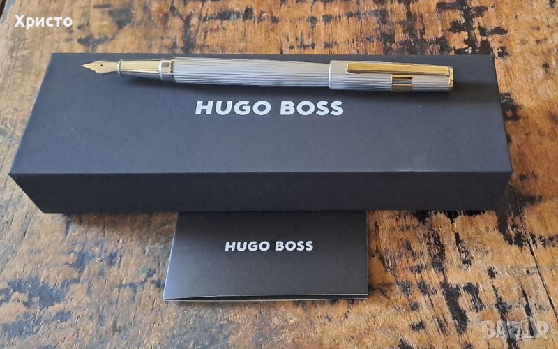 HUGO BOSS Gear метал сребро и злато, включваща модернизирани шарки на ивици, характерен модел на модна къща HUGO BOSS, напомнящ за нейното костюмно наследство. Перо стоманено гравирано. Пише със стандартни патрончета, като в писалката има едно. В оригиналната си кутия и сертификат. Размер на кутията 20x6,5x3,5 см. Чисто нова, не е използвана нито един път. Уникален, и красив модел. Страхотен подарък. Тази комбинация от светли златни и сребърни цветове внася лека ретро нотка в тази иначе решително модерна писалка. За ценители. Внос от Германия. Идеално балансираното ѝ тяло, спомага за максимално удобство при писане. Имам 2 броя, цената е за 1 брой.