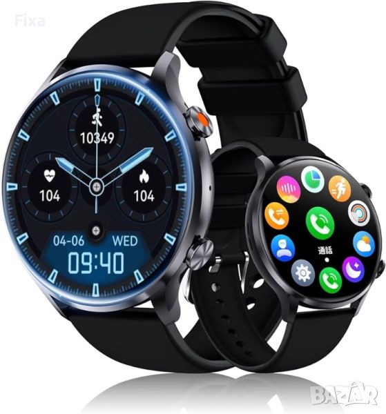 Смарт часовник Ninoha, кръгъл тип, функция за повикване, 1,43-инчов ултра голям екран, многофункционален, спортен часовник за бягане, упражнения, крачкомер, смарт часовник, входящи повиквания/съобщения/известия по линия,
