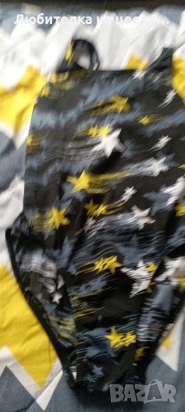 Нови бански Адидас ,тъмно синьо с шаркие ,от новата серия , 10 лв отг на С размер, черния на шарки е спийдо, оригинален отг на Хс- С,10 лв, жълтия също е нов и марков, 10лв,отг на С- М размер, синия е синсей отг на С размер, 10 лв, черния изрязания е С размер също на тази цена,детския е за 5-6 г и е на 10 лв, долнището е 8 лв ,ново е.Потник С размер с долнище М размер общо 10 лв. Имам и мн други и детски за 4-5 години и също и за жена размер С,М,Л и цели и половинки. При интерес пишете тук или на Вайбър.