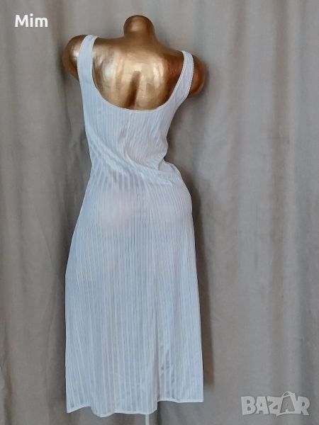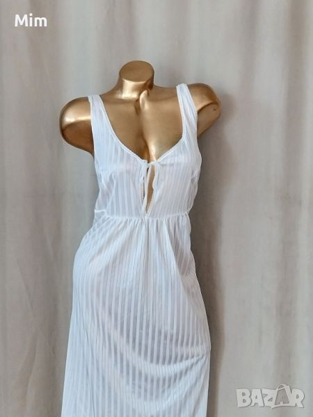 Бяла нощница, завързва се отпред с шнур ,може да се ползва и за подплата на рокля гръдна от от 53 до 60 см едностранно, ханш от 62 да 68 см едностранно, дължина 113 см .Неразличима от нова без хартиен носител.