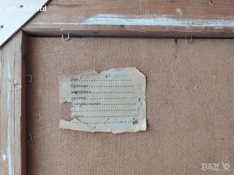 Има авторски етикет отзад, но е силно избелял, купувана е заедно с тази картина на Атанас Кънчев: