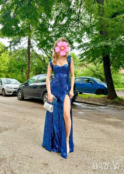 Вечерна, елегантна, абитуриентска рокля, размер S, Сини пайети → Обява 46343349