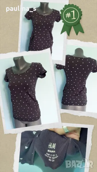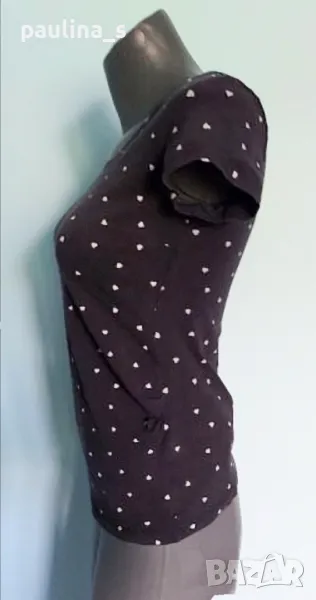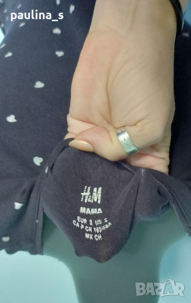 2️⃣. "H&M" / Цената е крайна 7,99лв / 3,9 евро. Маркова тъмно синя блуза тип туника, на сърца и с избелващ ефект, подходяща и при бременност, меко и нежно трико, покрива няколко размера от М до 2XL.