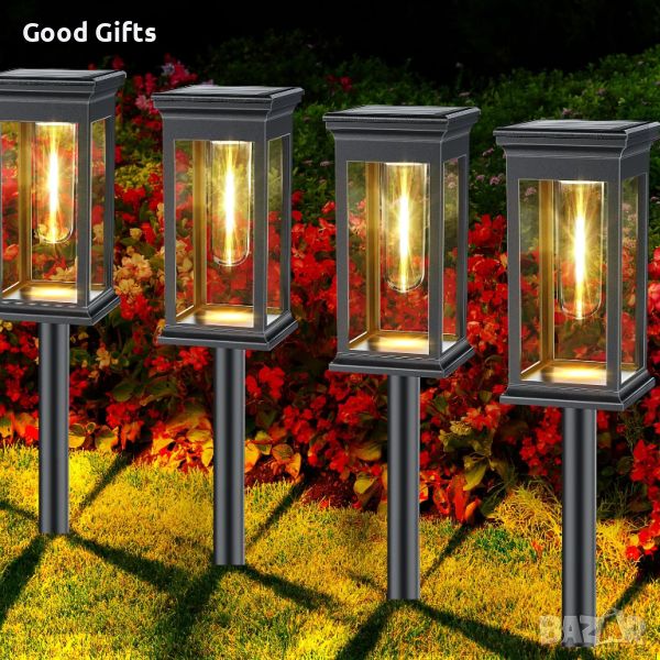 Комплект 4 броя Градински соларни лампи за пътека с Автоматично включване/изключване