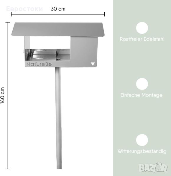 къща за птици е подходяща за всички сезони – все още издръжлива и устойчива на ръжда след много години. Дървените къщички за птици просто не могат да гарантират тази дълготрайност.