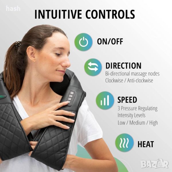 - Регулируема интензивност и две посоки на масаж - Лесно превключване между ниска, средна и висока скорост, както и 2 посоки. Получете пълен контрол върху вашето масажно изживяване, за да облекчите стреса и да се насладите на комфорта, който заслужавате.