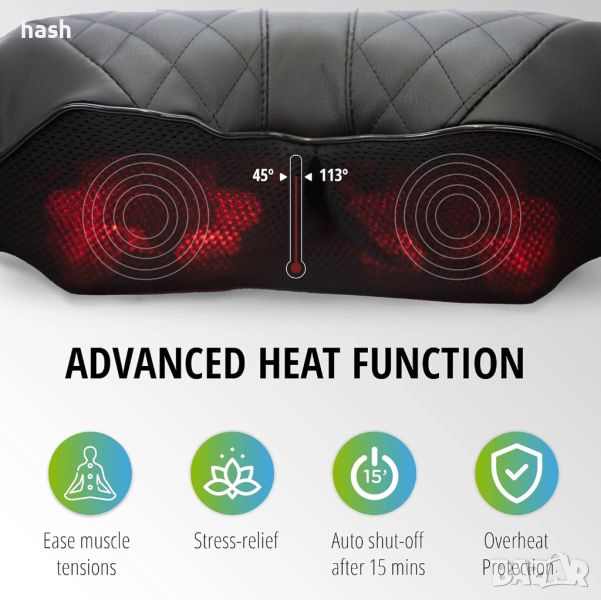 - Усъвършенствана загряваща функция - Шиацу масажорът има усъвършенствана, вградена загряваща функция, която затопля мускулите, което подобрява ефекта от масажа. Просто натиснете бутона, облегнете се и се отпуснете!