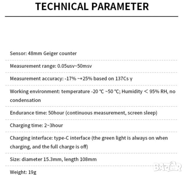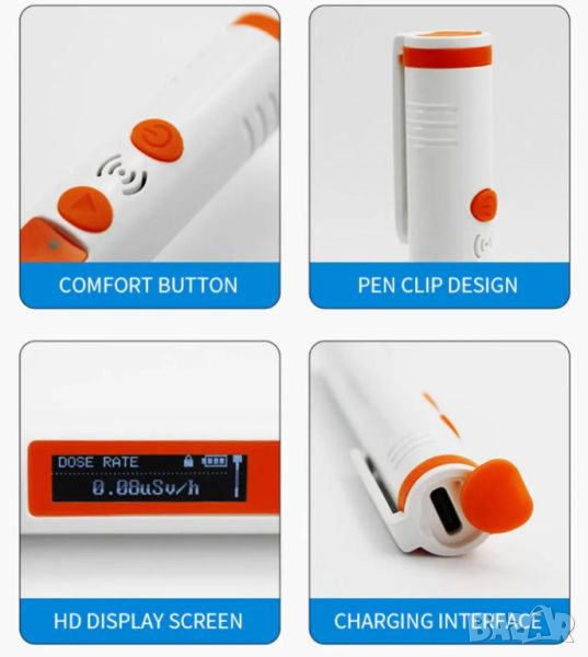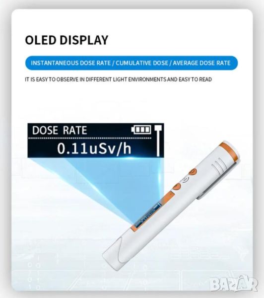 дозиметър) разпознаващ рентгенови, бета и гама лъчи (радиация).