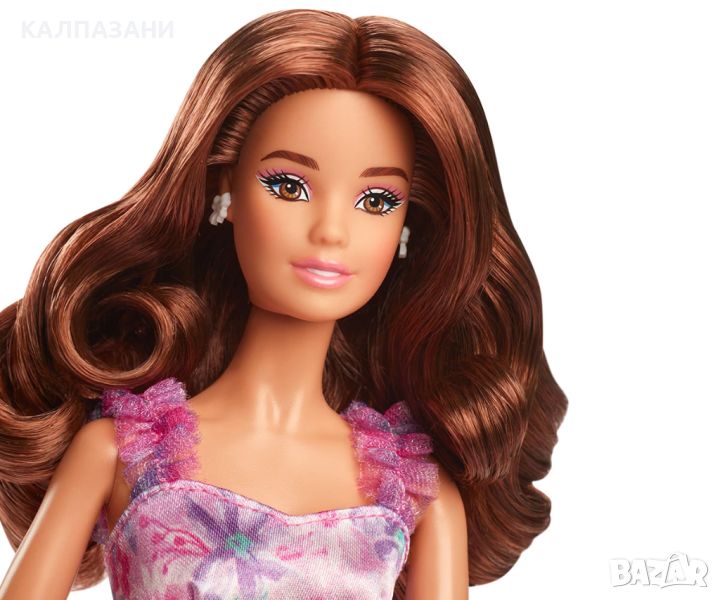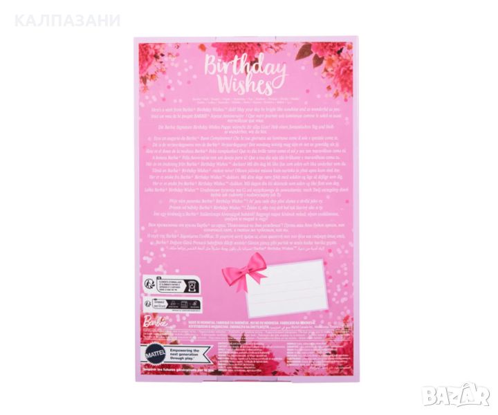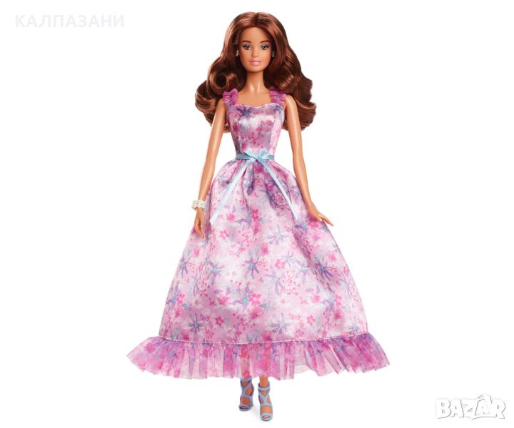 Честит рожден ден от Барби! Тази кукла Barbie Birthday Wishes за специален повод носи сатенена рокля, разцъфтяла с щамповани цветя. Тя е супер сладък подарък за големия ден на всяка малка принцеса и любителка на кукли Барби! Комплетът предлага място за писане на бележка, добавяйки личен щрих, който любимите хора могат да ценят за години напред. Нека тази кукла Барби бъде талисман за късмет, за да помогне на желанията за рожден ден да се сбъднат! Куклата Барби не може да стои сама. Цветовете и декорациите могат да варират.